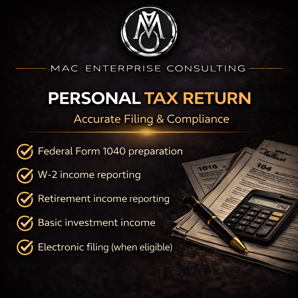 File your personal tax return with professional preparation and compliance-focused review.